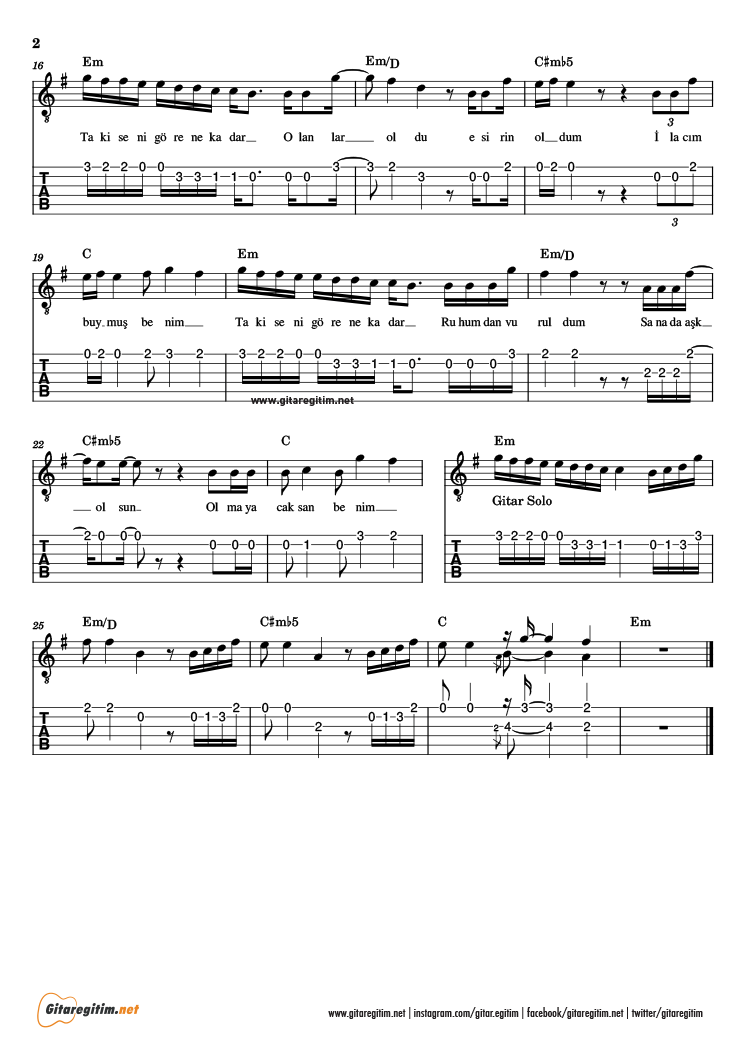 Ankara Echoes – Beni Al – Gitar Nota ve Tab – 2. Sayfa