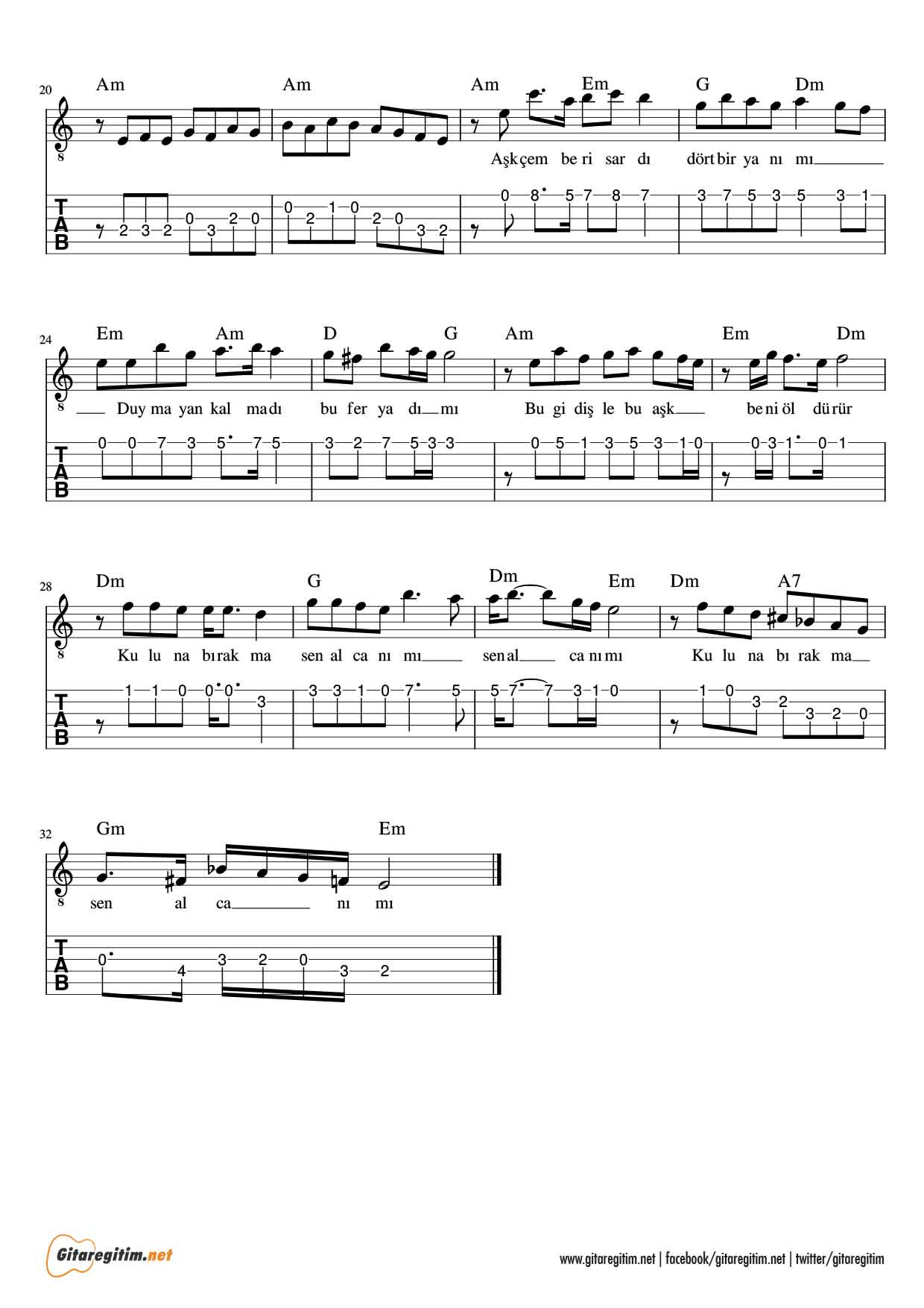 Aşk Çemberi, Gitar Tab. Sözü ve müziği Selami Şahin’e ait olan bir Nilüfer şarkısı. Kürdi dizisi üzerine bestelenen bir şarkı. La karar sesinde notaya aldım. PDF ve Jpg biçiminde görebilir, notasyonu dinleyebilirsiniz.