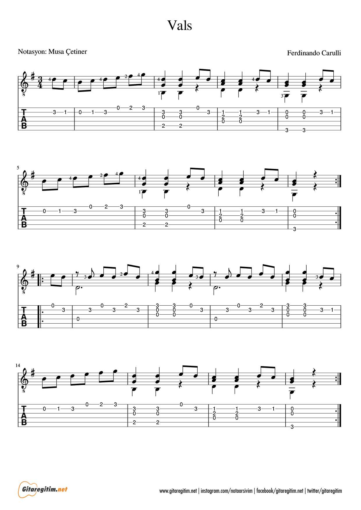 Carulli - Vals - Klasik Gitar Nota ve Tab