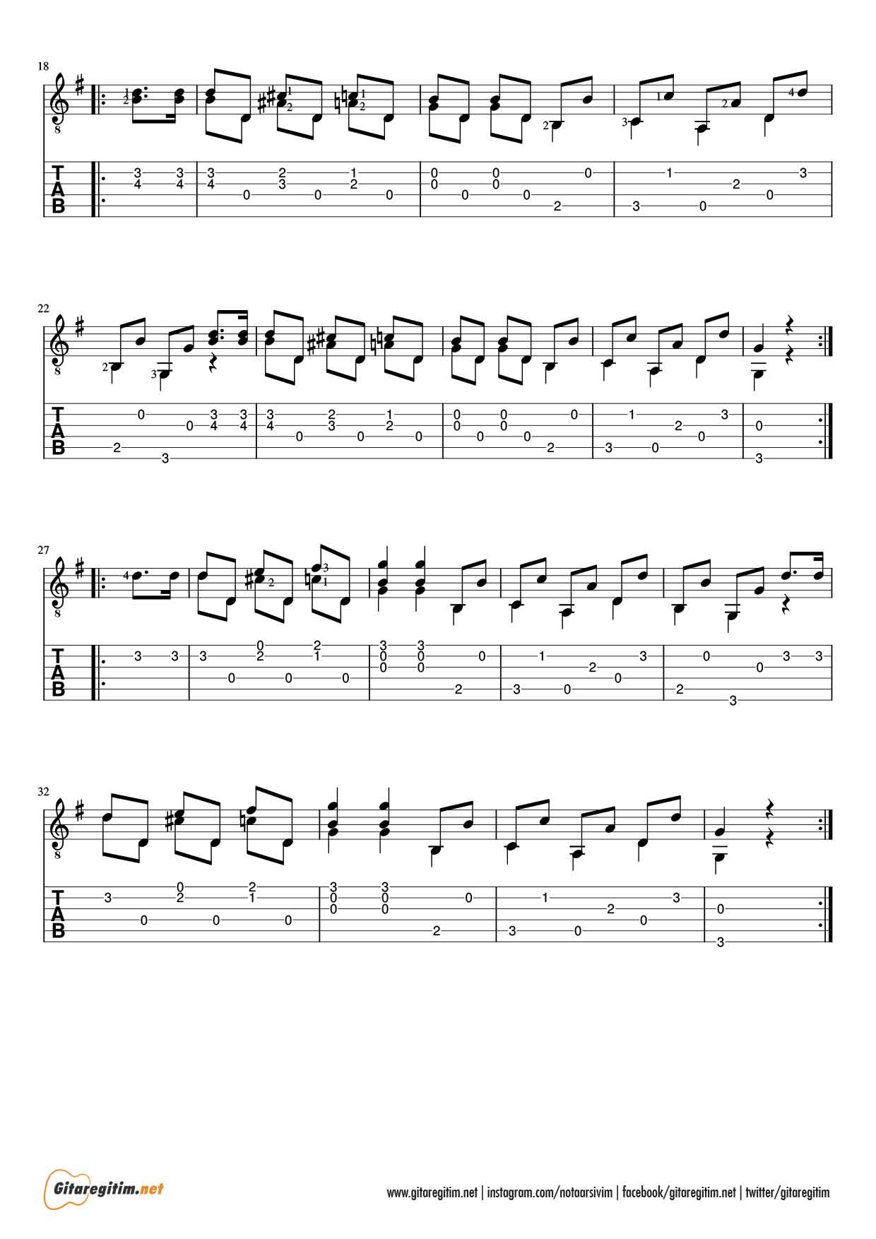 Carulli – Vals – Klasik Gitar Nota ve Tab