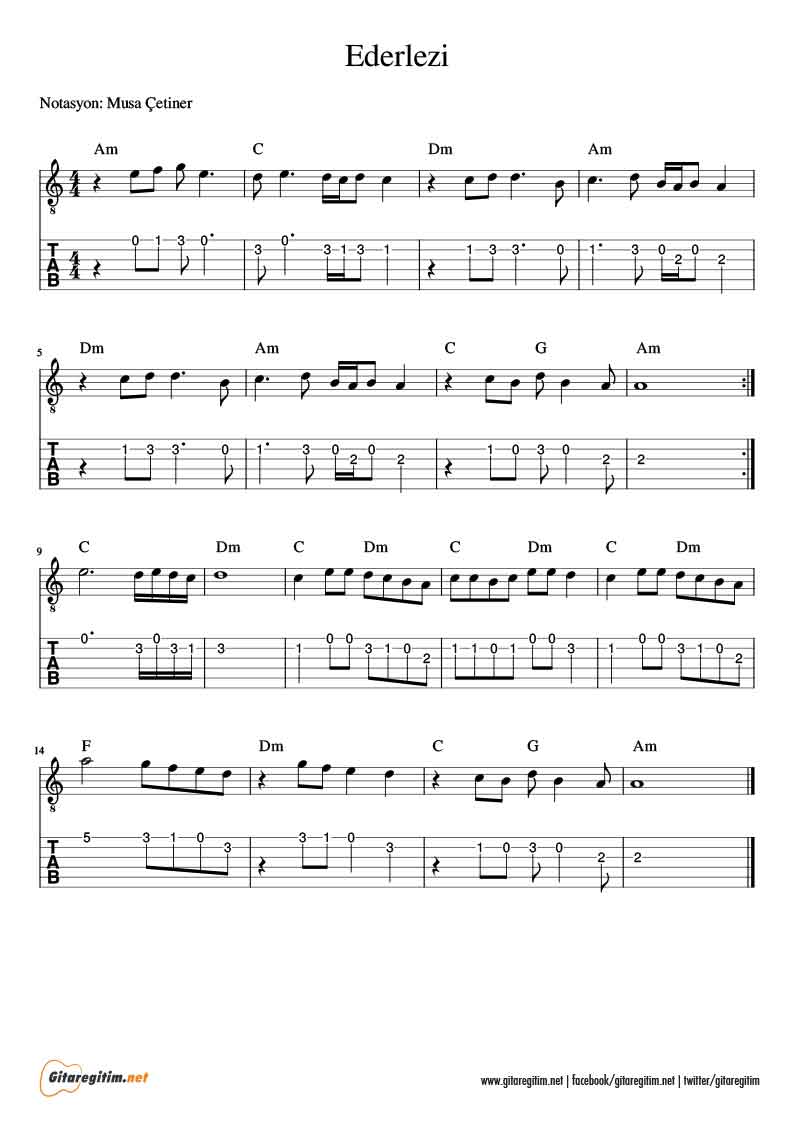 Ederlezi – Gitar Notaları – Tab / Ederlezi Free Guitar Tab