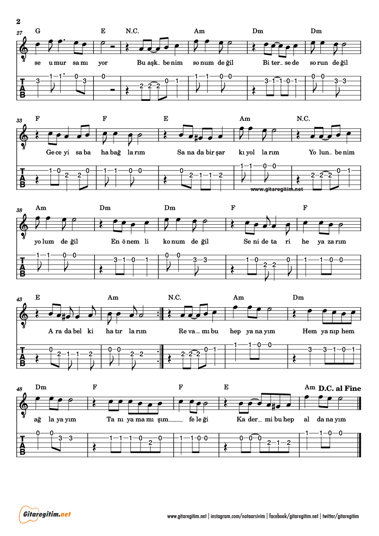 Ferhat Göçer – Reva – Gitar Nota ve Tab