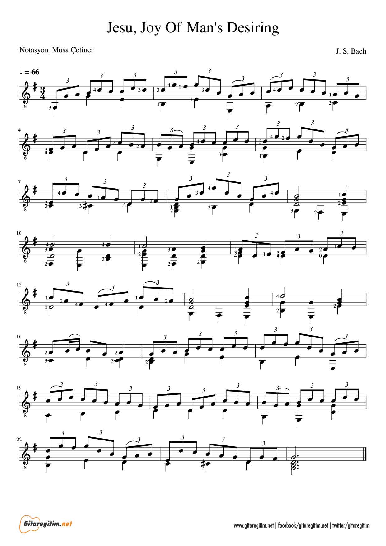 Jesu, Joy Of Man's Desiring - Klasik Gitar - Nota