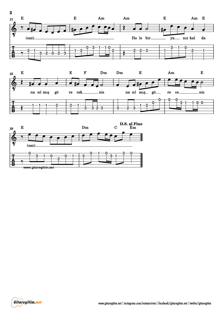 Kapın Her Çalındıkça - Gitar Nota Tab - 2
