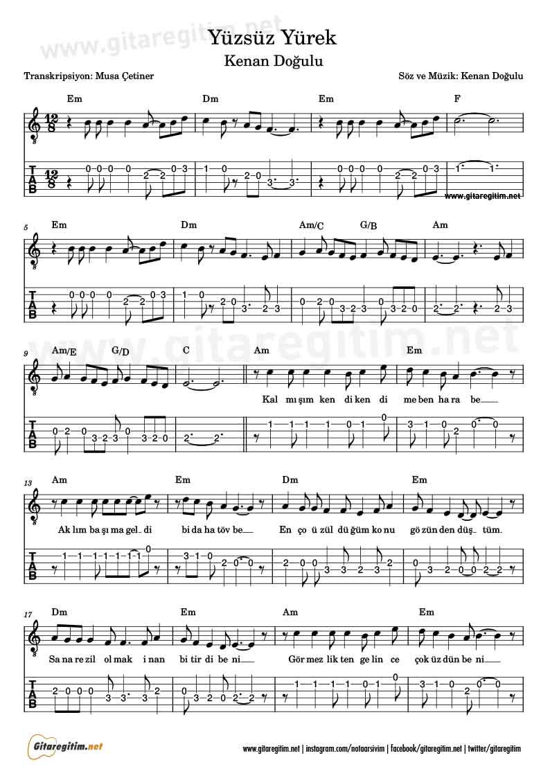 Yüzsüz Yürek – Gitar Notası ve Tab