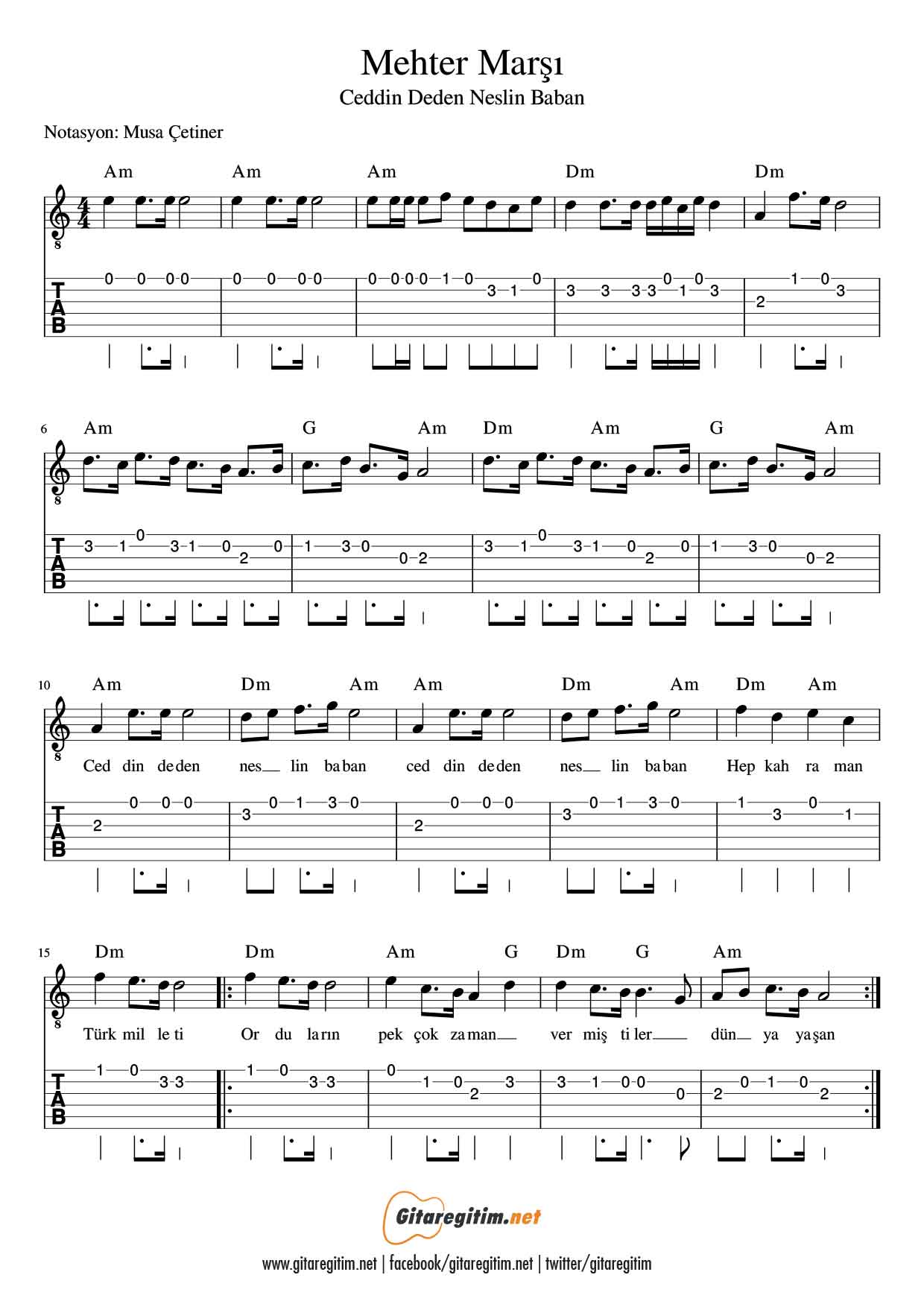 Mehter Marşı – Ceddin Deden Neslin Baban – Nota – Tab