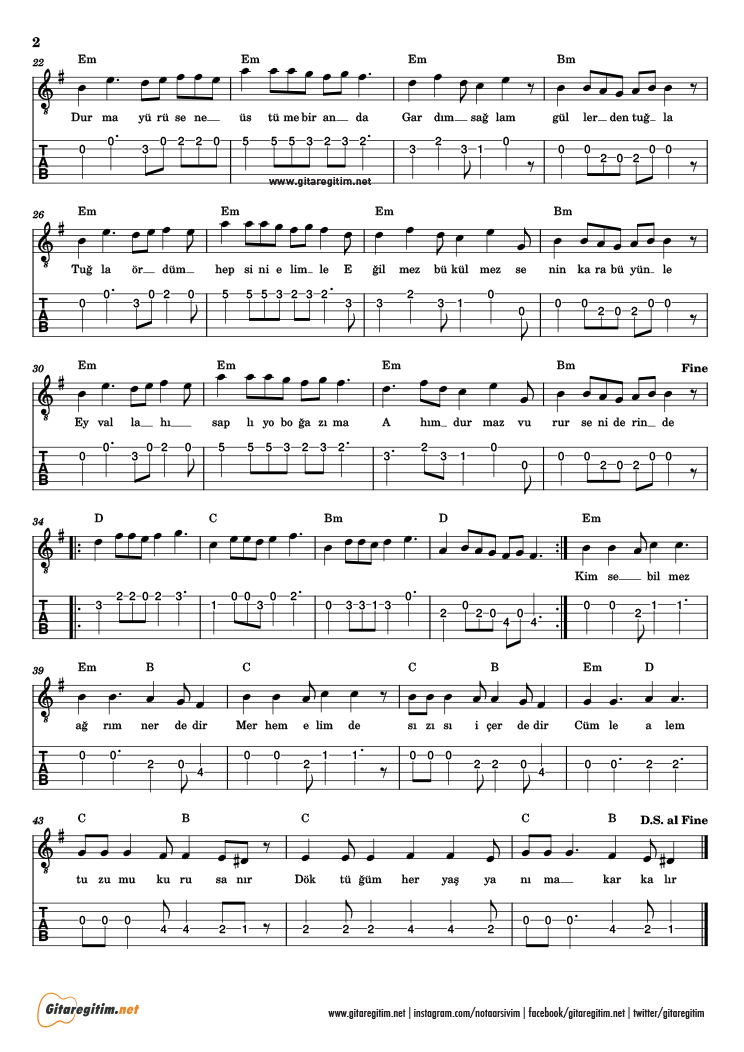Durma Yürüsene - Gitar Nota ve Tab - 2