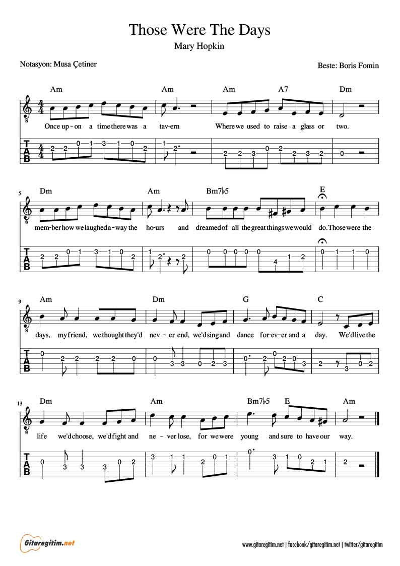 Mary Hopkin - Those Were The Days - Gitar Notası - Gitar Tab