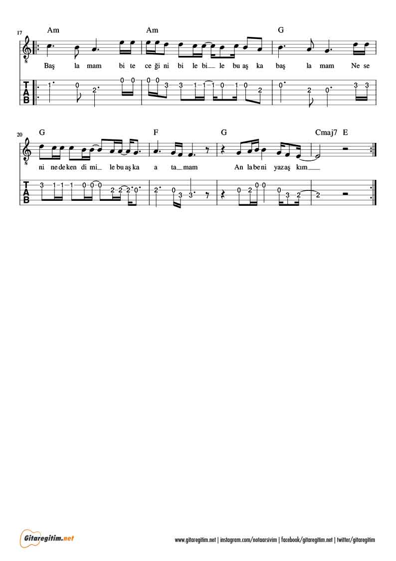 Onay Şahin (aklım kaldı birinde) ( kaba çalar kemençem) notasını hazırlar mısınız?